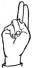 На ћирилици написано КОСТАДИН ДЕЛИЋ састоји се из 13 слова [?]. Исписано ћириличном једноручном азбуком за глувонеме: